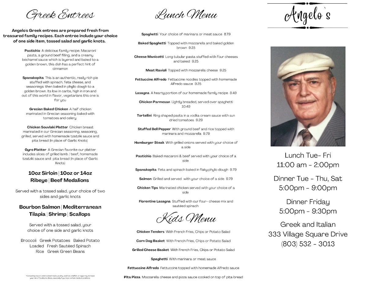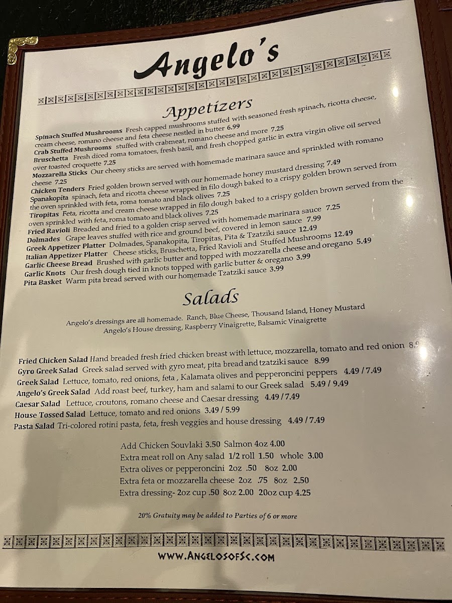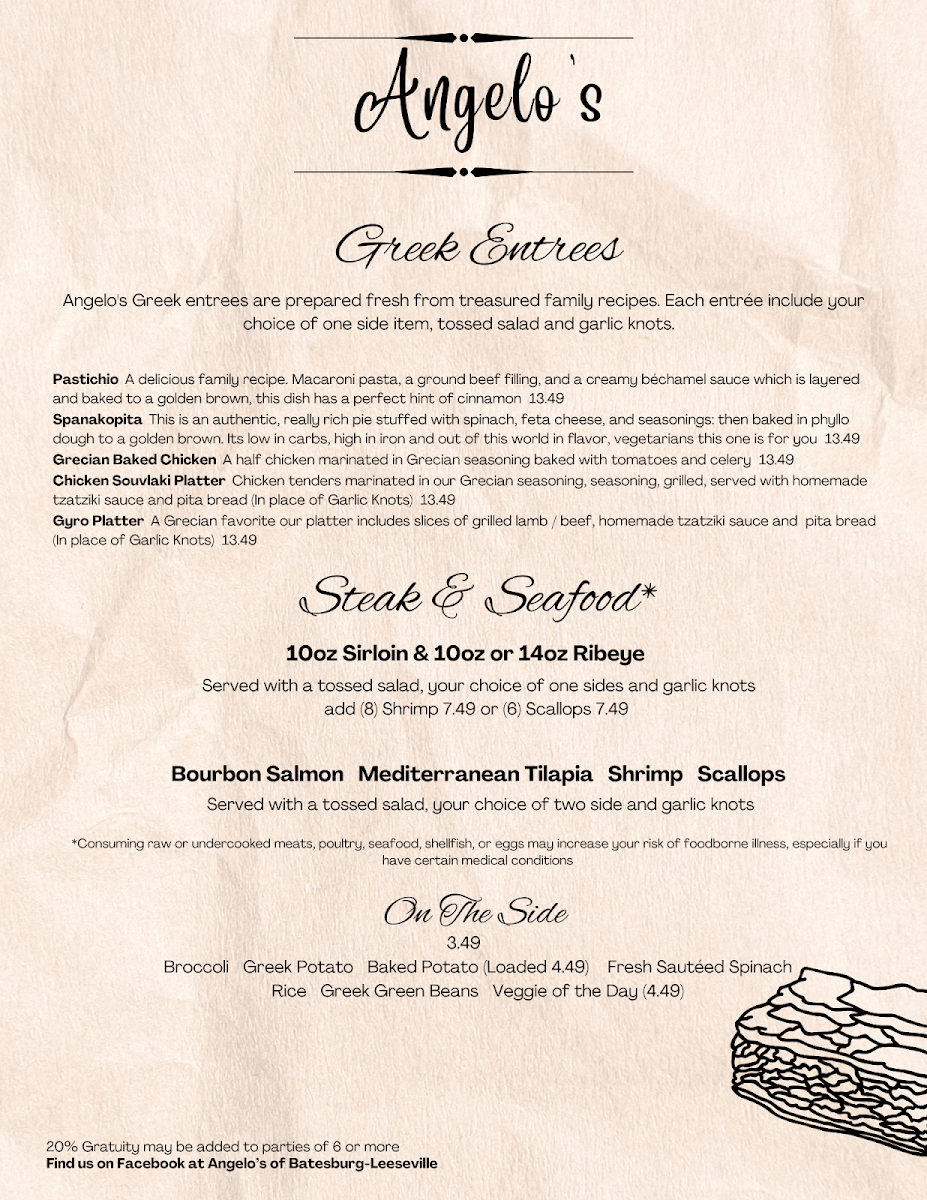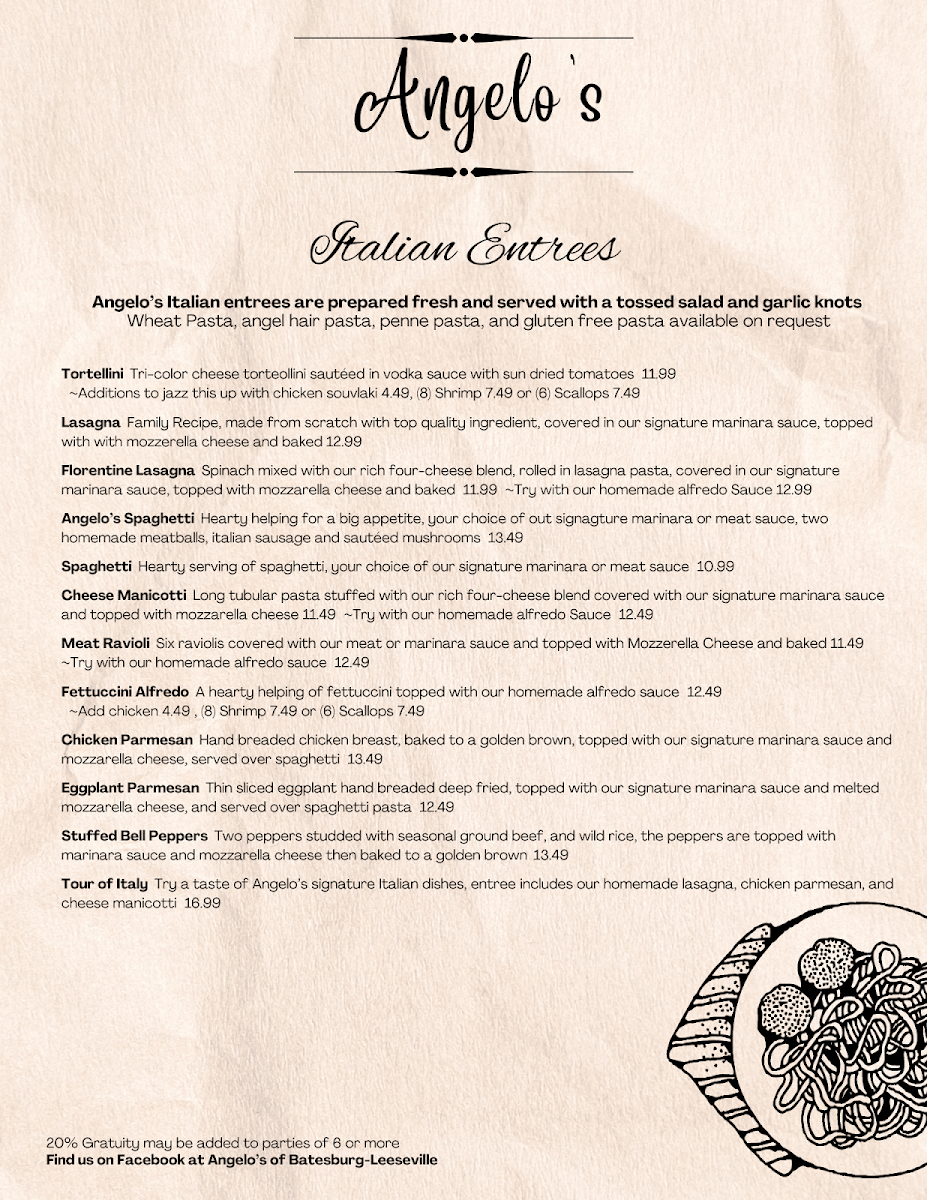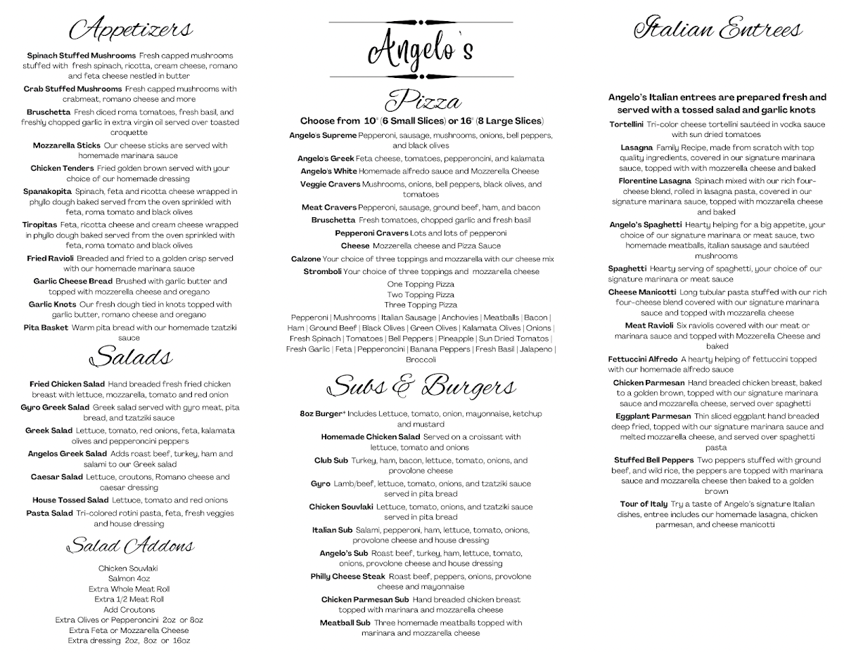 Angelo's Greek and Italian Menu (2025 Update)